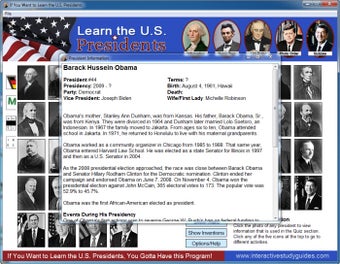 Learn the U.S. Presidents es una curiosa aplicación con la que aprenderás todo lo relacionado con los 44 presidentes de los Estados Unidos, desde George Washington hasta Barack Obama: biografías, fechas, guerras, hitos y cualquier información que se te ocurra está en Learn The U.S. Presidents.